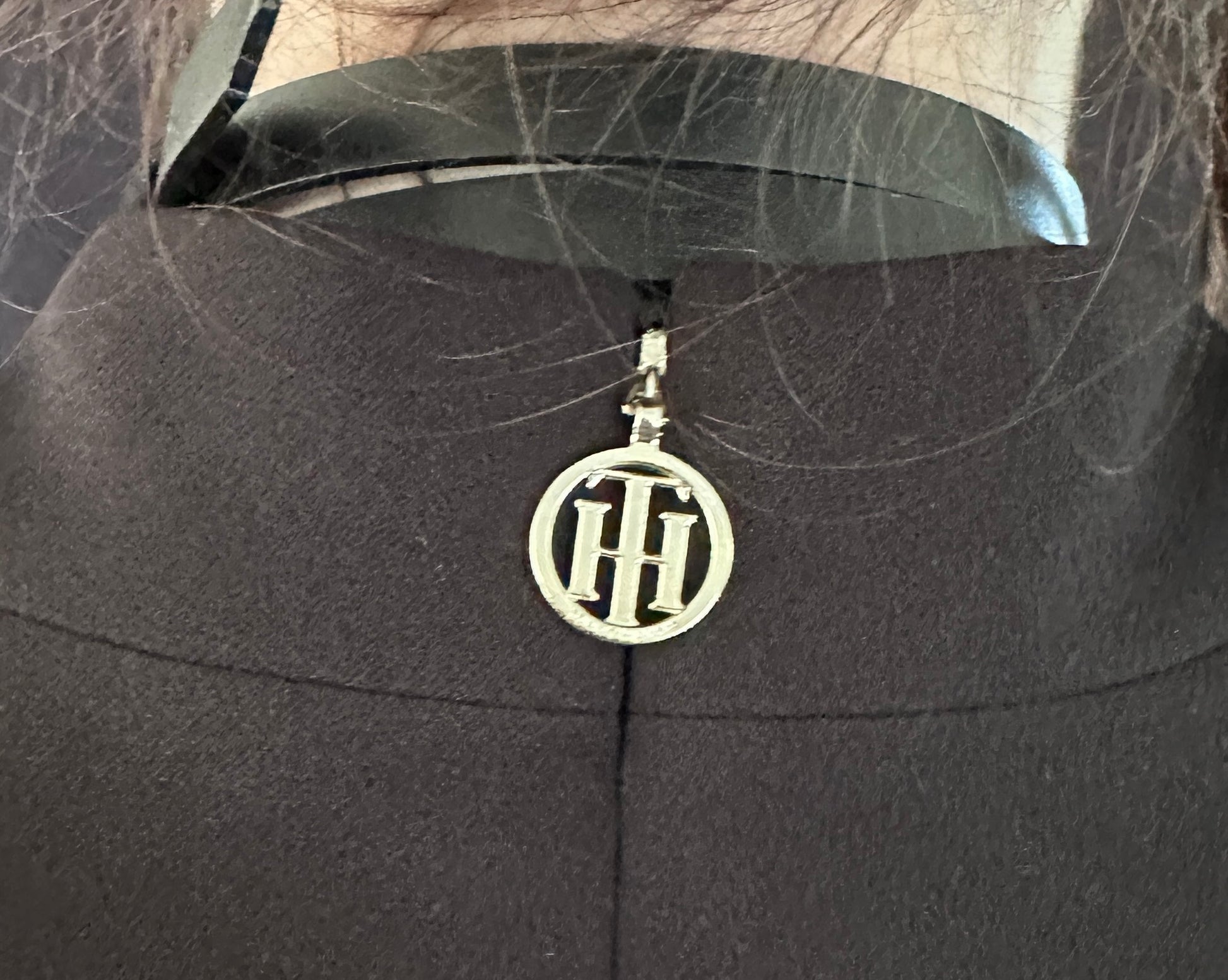 Black Tommy Hilfiger secondhand knee length dress. Polyester blend stretch crepe. Silver buttons with functional pockets. Back zip with TH logo charm. Great layering piece with no signs of use/wear.