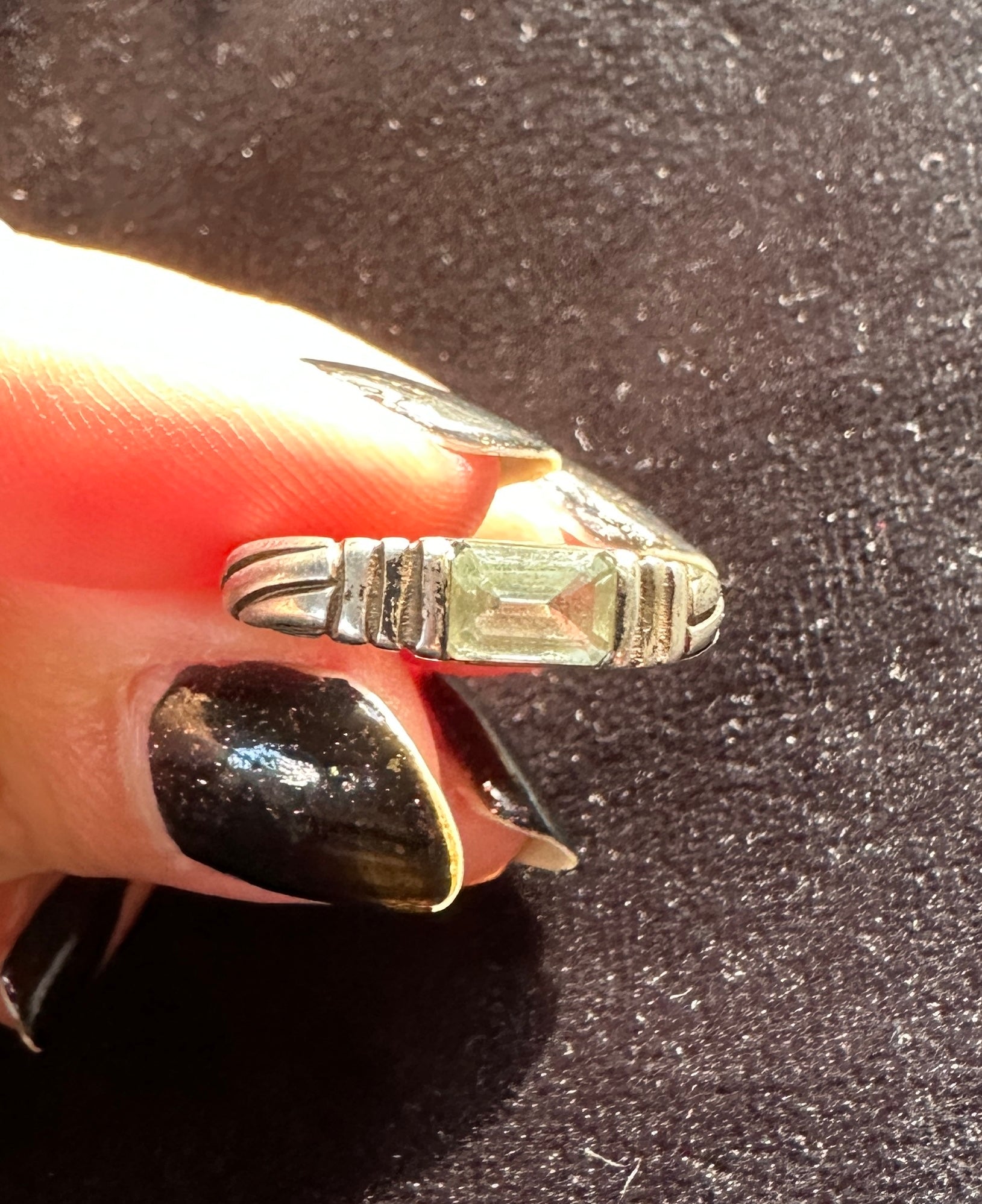 Vintage Art Deco style stackable ring. .925 sterling silver. Rectangular aquamarine stone at center.