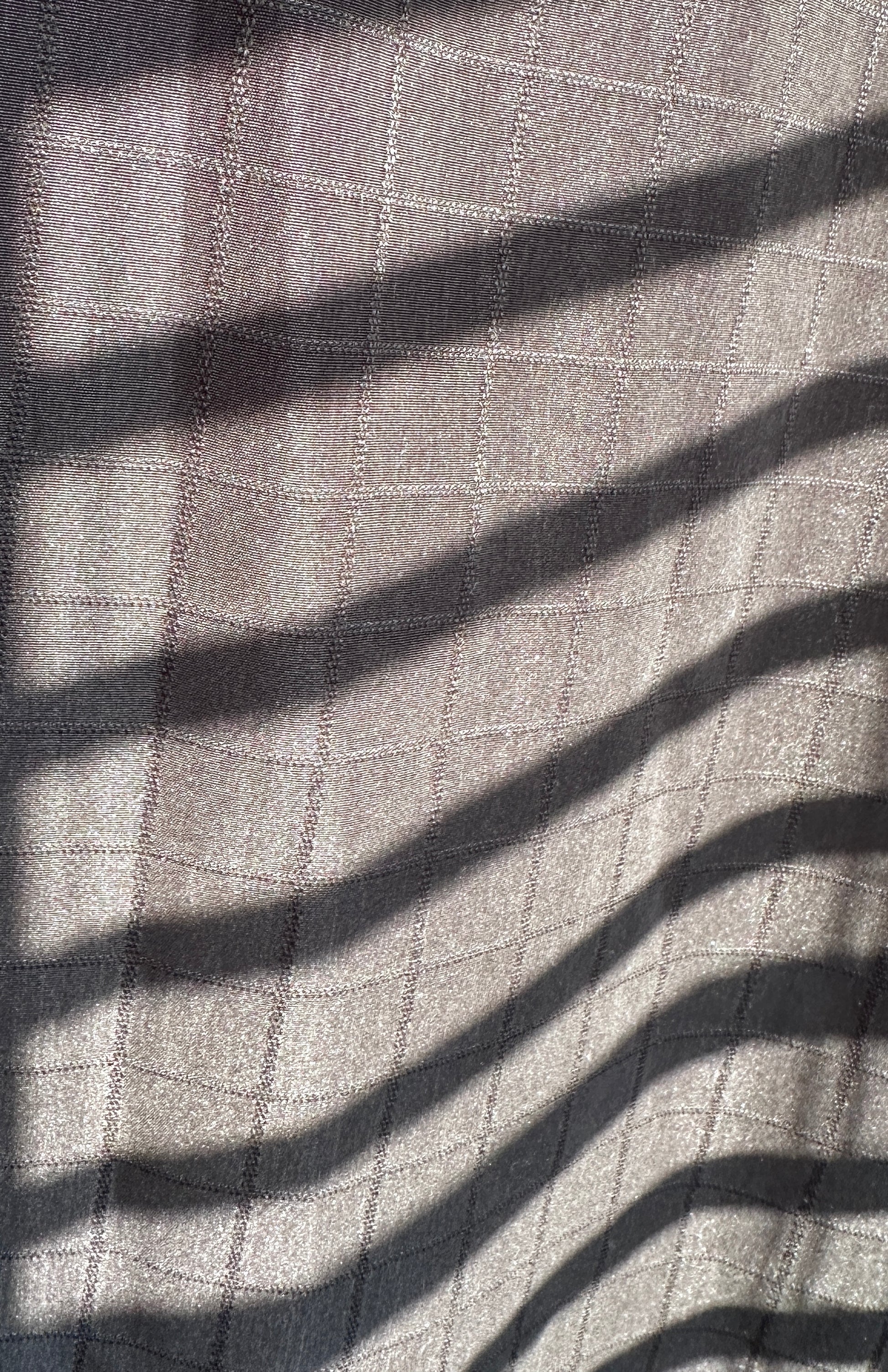 Unisex black button down late 80's grid textured shirt. Sueded polyester. Loose cut.
