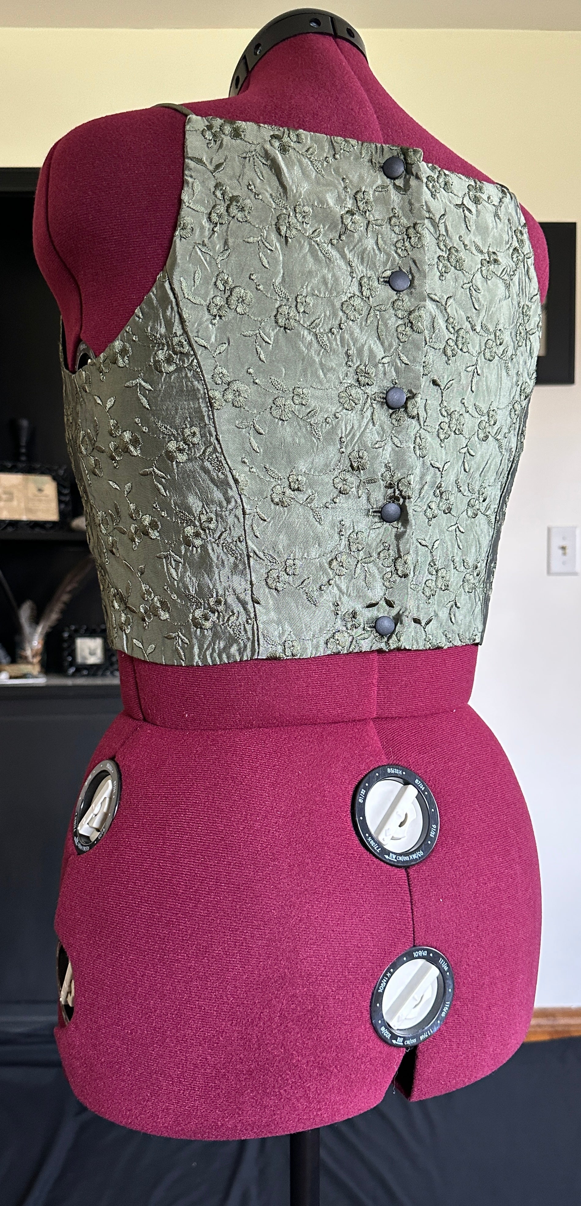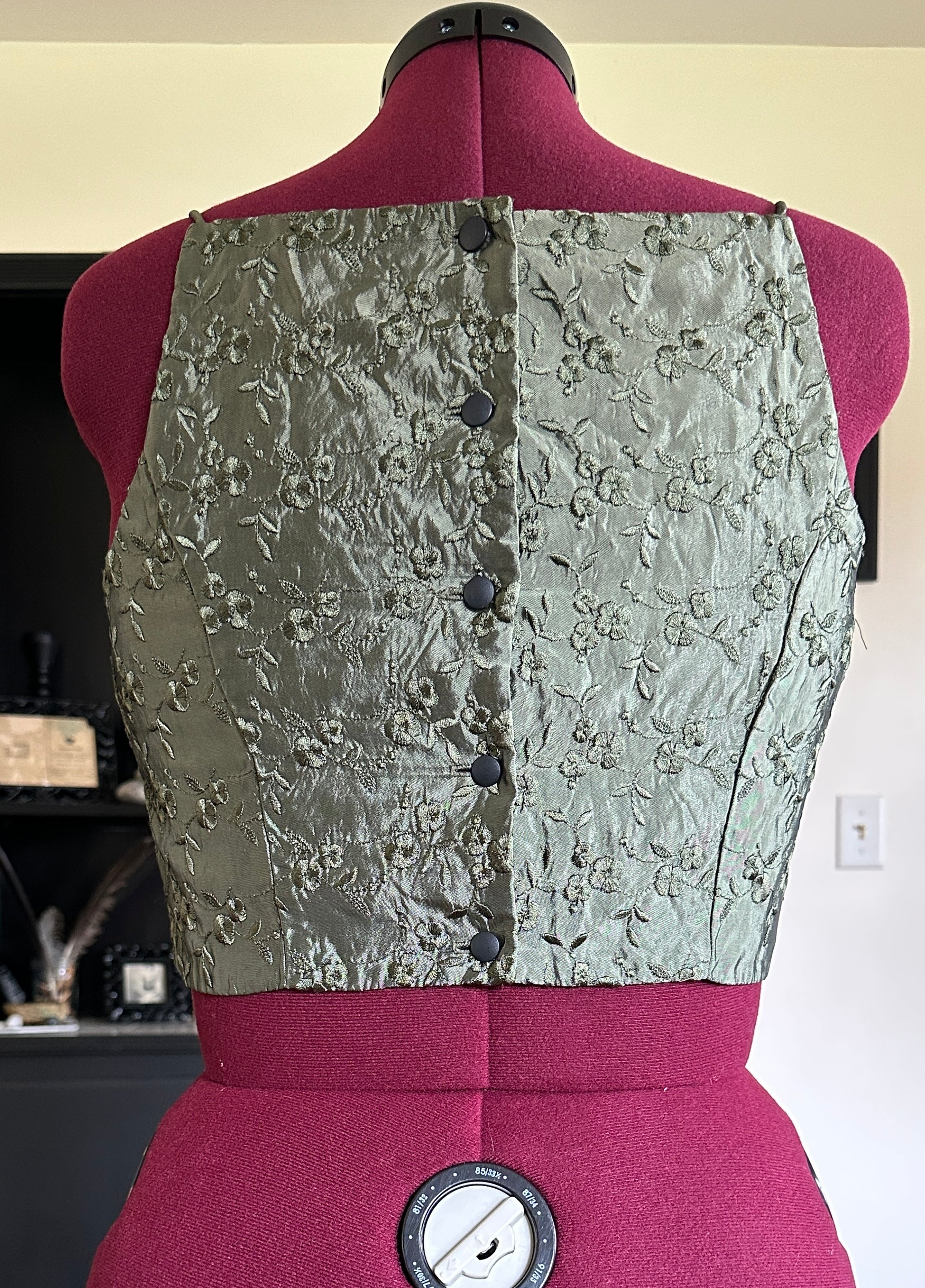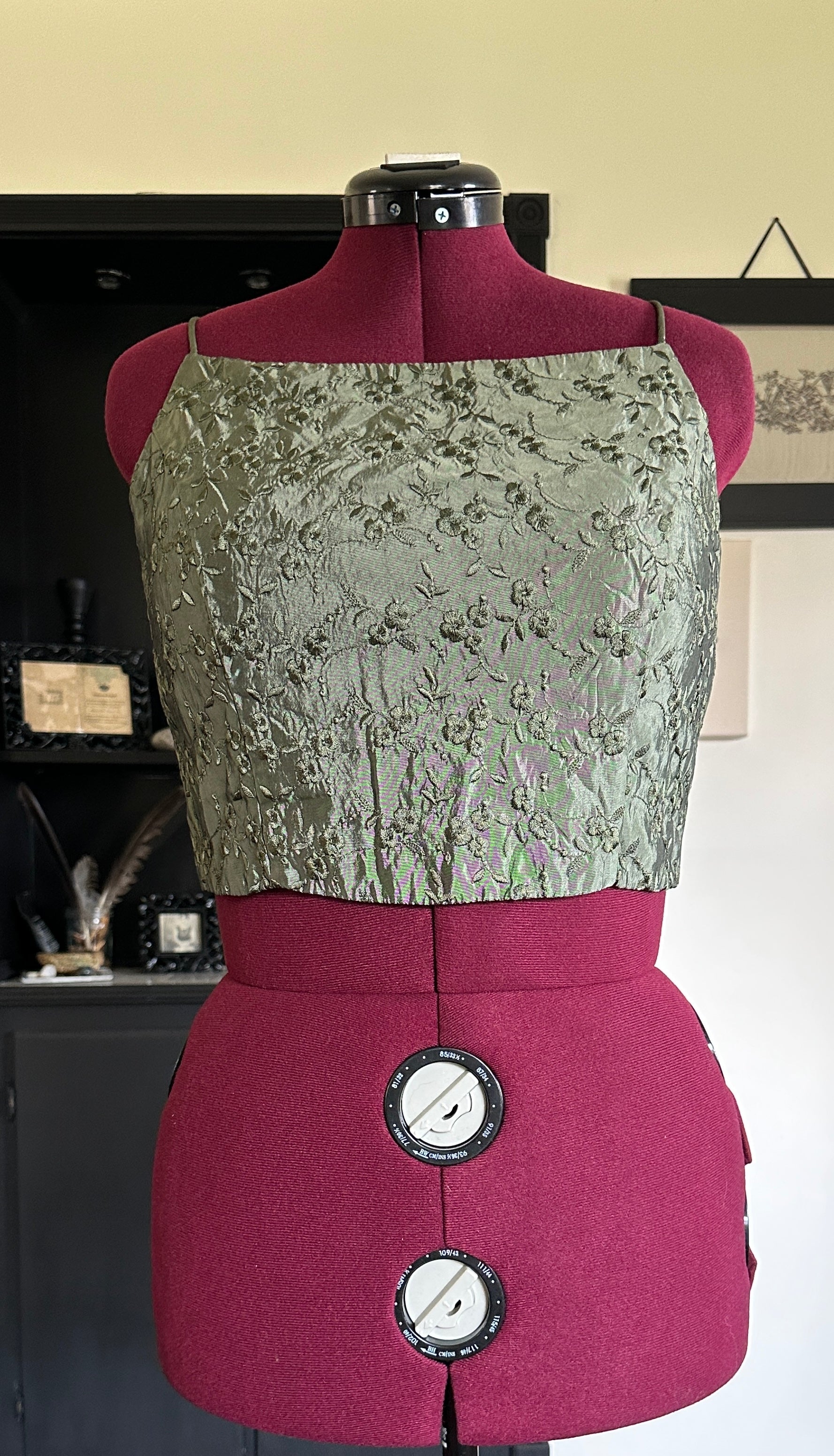 Vintage early 2000s sage green bodice tank. Spaghetti strap. Black buttons on back. Cropped length. No fabric label - most likely acetate. Fully lined.