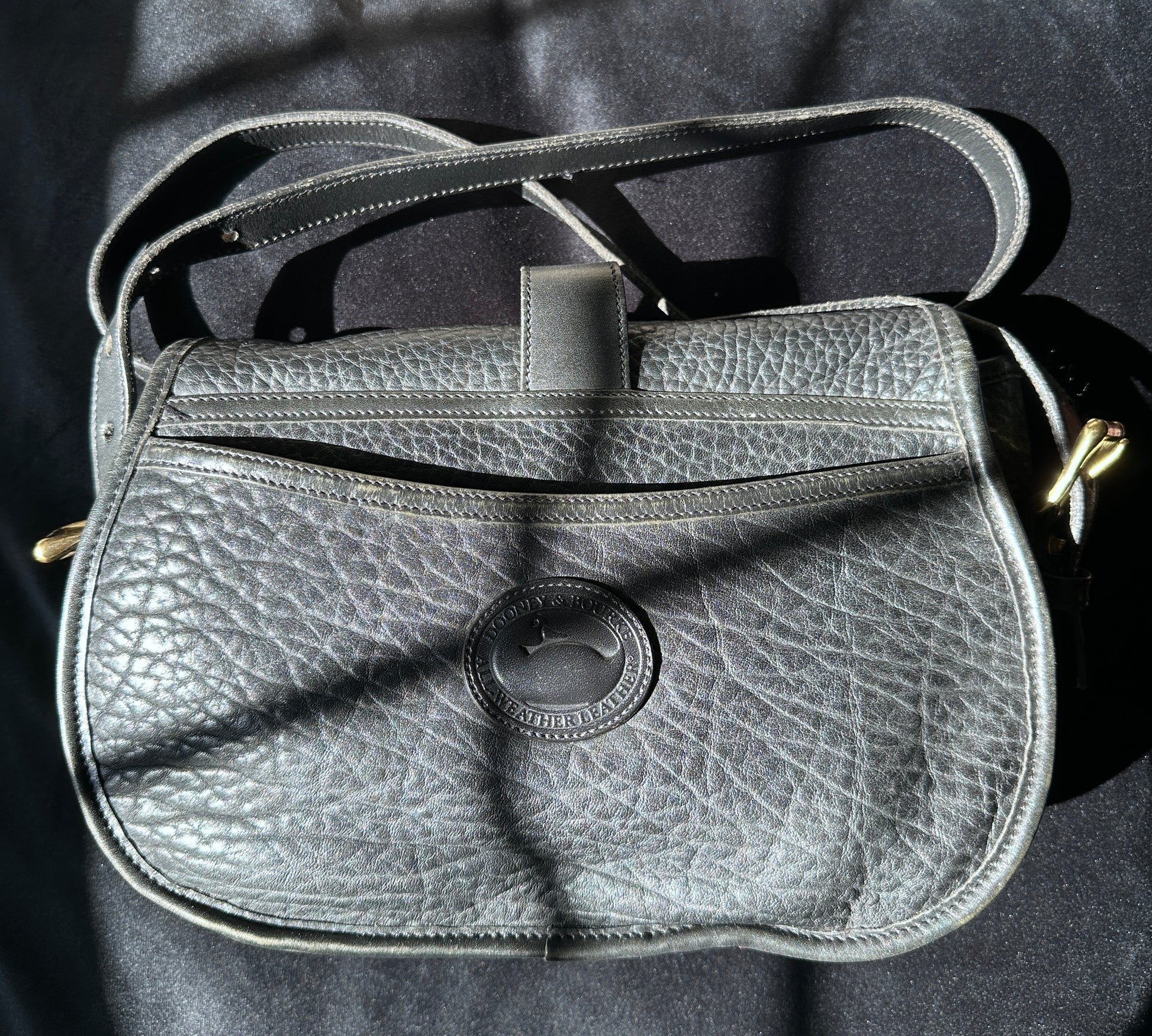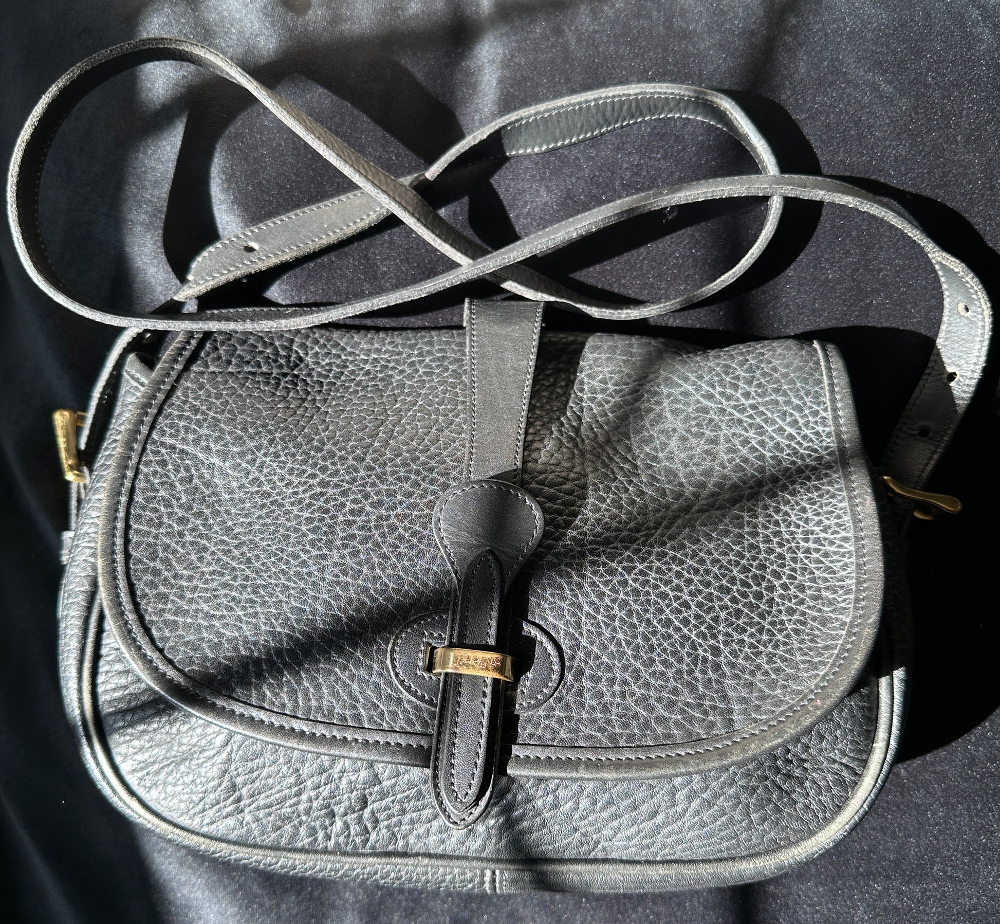80s Vintage Dooney & Bourke Black Leather Saddle Bag