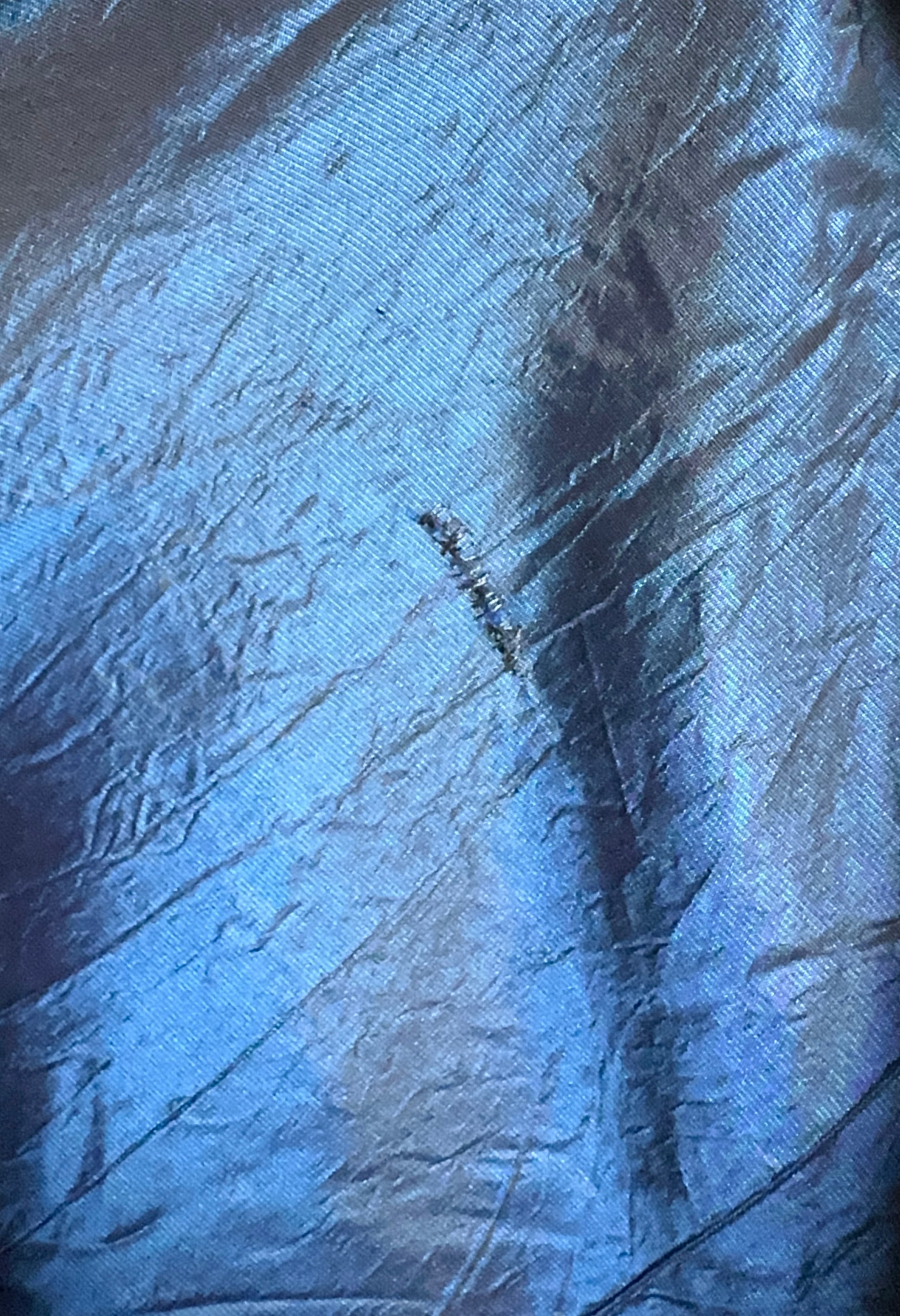 Condition: Good; skirt is perfect EXCEPT small tear on train that has been mended (see photo).